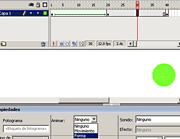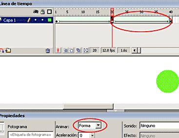 Ahora haz clic en cualquier punto entre el forograma 20 – 39 y cambia a Animar a Forma.
