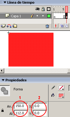 Una vez marcadas las propiedades seleccionar la herramienta rectángulo y dibujar uno de medidas 150 ancho y 112 alto coordenadas X=0 y Y=0