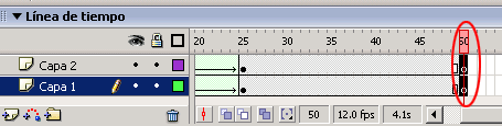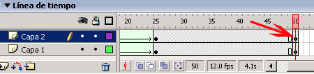 Para insertar la forma en el fotograma # 50 de la capa 2 repetir los pasos 2, 3, 4, pero ahora en la capa dos.