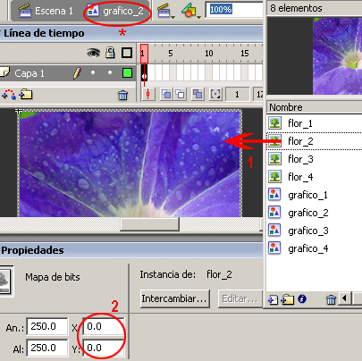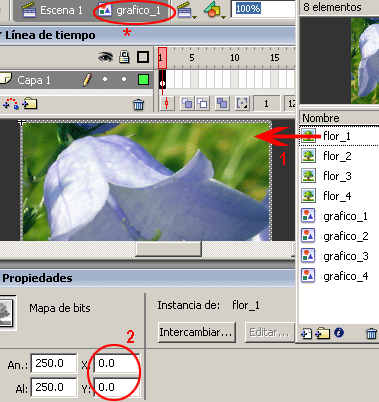 En este paso colocar la primera imagen en el símbolo de nombre grafico_1, colocar la imagen en coordenadas X=0 y Y=0