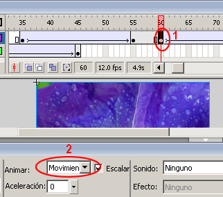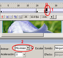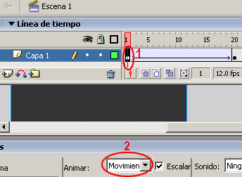 Los siguientes pasos están dedicados a explicar la afinación. Seleccionar el primer fotograma y en la barra de propiedades seleccionar Animar Movimiento.