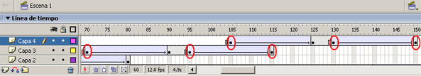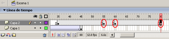 En esta capa insertar fotogramas clave en los frames # 55, 60 y # 90