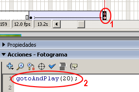 Insertar un fotograma clave vacío en el frame # 140 y en este pegar los fotogramas que fueron copiados. Y por ultimo seleccionar el fotograma # 159, en la barra de Acciones agregar gotoAndPlay(20);
