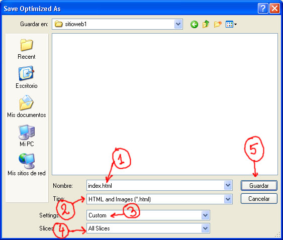 - Tipo de archivos que guardaremos: HTML y las Imágenes