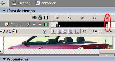 Y por último para terminar con el trabajo de las imágenes, colocar el cursor sobre el frame # 60 e insertar un fotograma (F5).