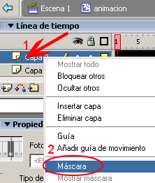 Seleccionar la Capa 2 y dar clic con el botón derecho del ratón y seleccionar la opción Máscara.