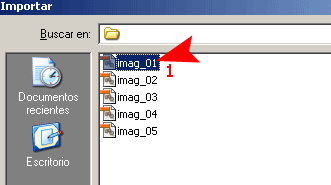 3-. Importar (ctrl. + R) la serie de imágenes. Aquí presento un pequeño truco, nombrar a las imágenes con el mismo nombre y un número consecutivo. Luego seleccionar solamente la primera imagen para importarla.