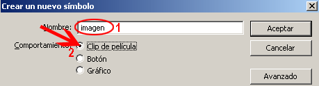 Crear un segundo símbolo nombrarlo imagen y de comportamiento clip de película.