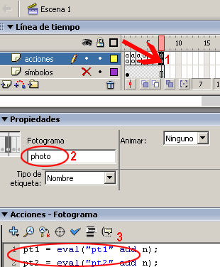 Insertar otro fotograma vacío en el frame 7 (F7), etiquetar este fotograma con el nombre de photo, y escribir en acciones-fotograma