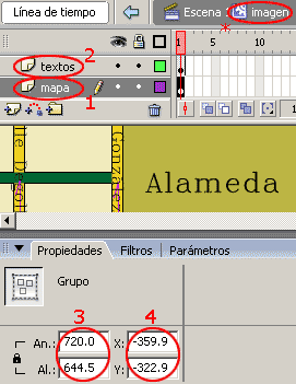 b)-. Colocar la imagen en coordenadas X = -360.0 y Y = -323.0.