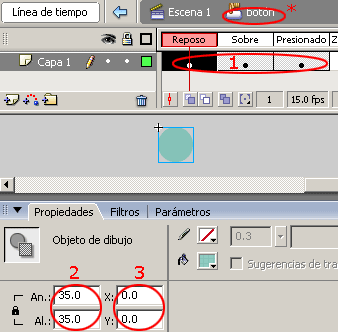 a)-. Las dimensiones usadas para el botón son 35.0 * 35.0 píxeles.