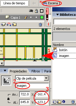 6-. Regresar a la Escena, y arrastrar desde la biblioteca el símbolo imagen.
