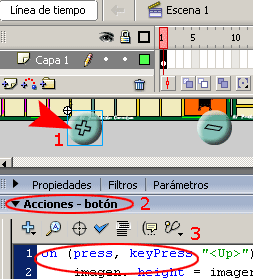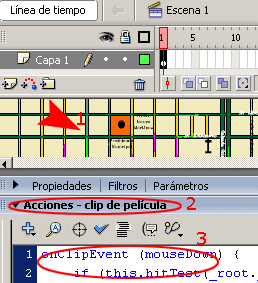 a)-. Abrir la barra de Acciones – clip de película e insertar el siguiente código action script.
