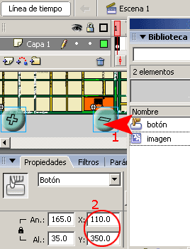 a)-. Agregar el símbolo de + al botón de la izquierda y el símbolo – al botón de la derecha.