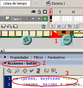 a)-. Abrir la barra de Acciones – clip de película e insertar el siguiente código.