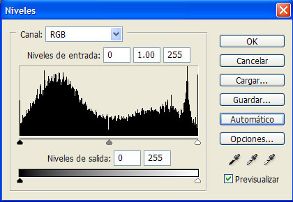 Seleccionamos la capa “luz” y presionamos nuestro botón “capa de ajuste”, seleccionamos niveles y presionamos la opción: “Niveles automáticos”.