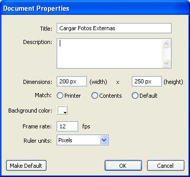 Bien, primero he creado un documento flash con las siguientes propiedades.