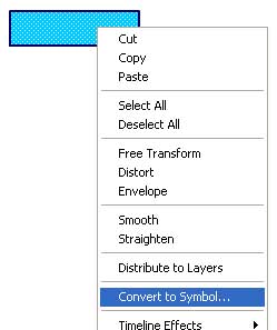 con doble click sobre el rectángulo selecciono el borde y relleno del mismo y presiono botón derecho y Convert to Symbol