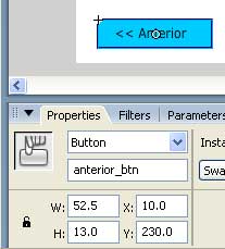 anterior_btn.onRelease = anterior; // esto indica que el objeto "anterior_btn" cuando se presiona debe ejecutar la funciona llamada "anterior", así es como se diría esa línea en español, como entiende esto flash, bien, "anterior_btn" es el nombre que le dimos a la instancia del botón anterior en los primeros pasos de nuestro dibujo en la figura 9, y "onRelease" es una palabra clave de Action Script que define la acción a realizarse cuando se presiona un objeto, por ultimo "anterior" es la función que llama al presionar