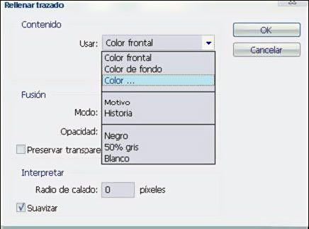 vez terminada de trazar la mano, con la misma herramienta pluma le damos click derecho y ponemos rellenar trazado. En usar ponemos