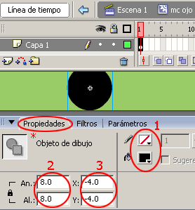 a)-. Las dimensiones del óvalo son 8.0 * 8.0 píxeles de ancho y alto.