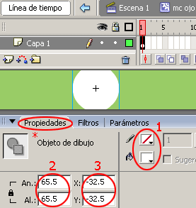 a)-. Las dimensiones del óvalo son 65.5 * 65.5 píxeles de ancho y alto.