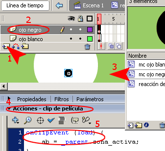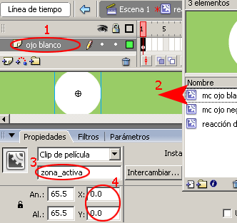 9-. Regresar a la Escena y arrastrar dos veces el símbolo reacción de ojo.