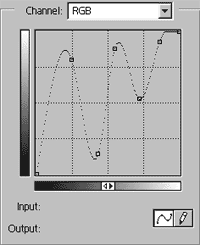El siguente paso será darle una apariencia metálica. Presiona Ctrl+M para ver el cuadro de las Curvas y crea una como la de la imagen izquierda. El resultado debe ser como el de la imagen derecha.