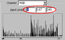 Presiona Ctrl + L. Manuamente corregimos usando los siguientes valores: 0, 1.67 y 240.