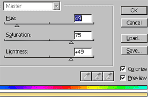 Haz clic sobre la casilla colorize y aplica: Hue = 49, Saturation = 75 y Lightness = +49, tal cual lo muestra la imagen izquierda. La derecha muestra el resultado.