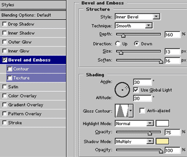 Finalmente damos un poco de profundidad aplicando el Bevel and Emboss de los estilos de capa: