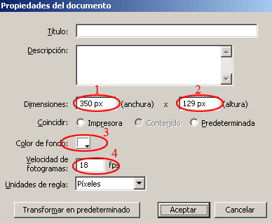 1-. Primero hacer el documento (ctrl. + J) de dimensiones 350 * 129 píxeles de ancho y alto respectivamente.