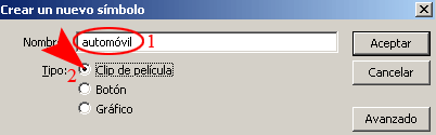2-. Crear el único símbolo (ctrl. + F8) de que consta el tutorial.
