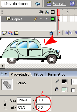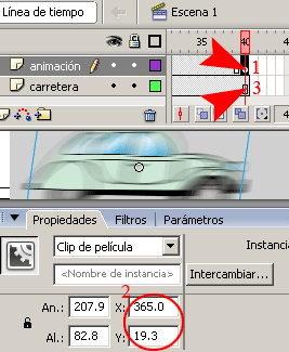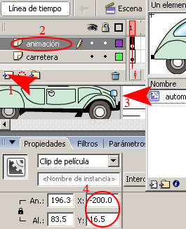a)-. En la barra de propiedades seleccionar la opción Animar Movimiento.