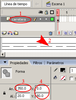 c)-. Luego insertar un fotograma (F5) en el frame # 40 de la capa carretera.