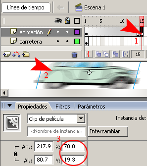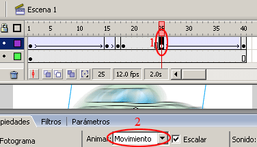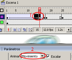 b)-. En la barra de propiedades seleccionar la opción Animar Movimiento.