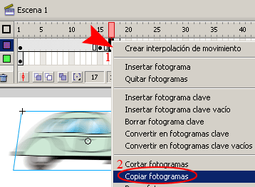 a)-. Hacer clic con el botón derecho del ratón y en el menú desplegado seleccionar la opción de Copiar fotogramas, también se puede segur la siguiente ruta (ctrl.+Alt.+ C).