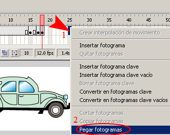 a)-. Hacer clic con el botón derecho del ratón y seleccionar la opción de Pegar fotogramas, en lo personal la opción más fácil para pegar fotogramas es (ctrl.+Alt.+V)