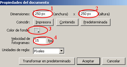 1-. Comenzar por crear un documento (ctrl. + J) de 250 * 250 píxeles de ancho y alto respectivamente.