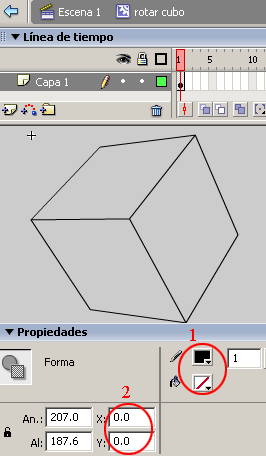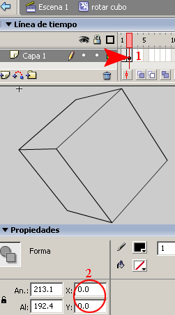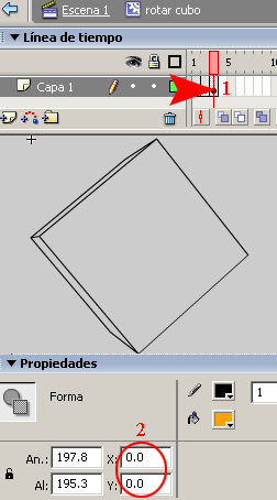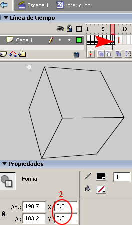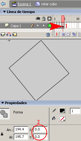 4-. Insertar un fotograma clave vacío (F7) en frame # 2.
