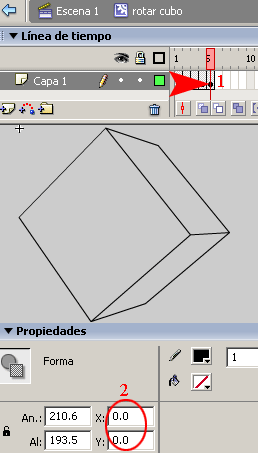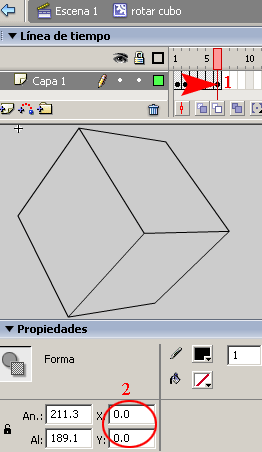7-. Insertar un fotograma clave vacío (F7) en frame # 5.