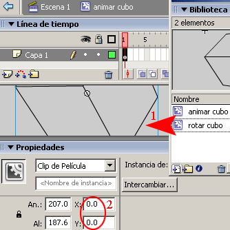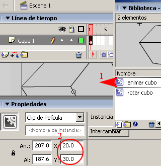b) Arrastrar desde la biblioteca el símbolo animar cubo.
