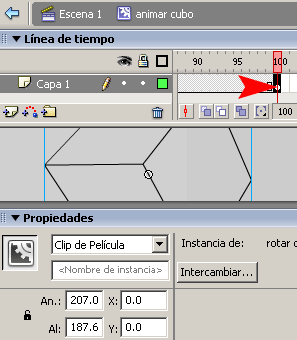 12-. Insertar un fotograma clave (F6) en el frame # 100.