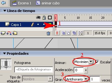 a) En la barra de Propiedades seleccionar la opción Animar >> Movimiento.